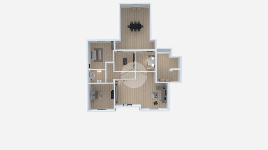 e si sviluppa con ingresso su un salone doppio, 2 camere, bagno, cucina abitabile e terrazzo di collegamento.